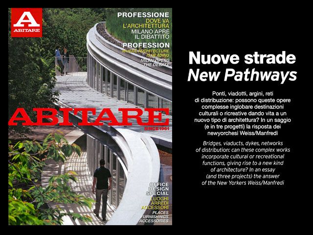 Italian design magazine Abitare's March issue features a 10-page spread on WEISS/MANFREDI. Entitled "New Pathways," the article highlights three projects – the Brooklyn Botanic Garden Visitor Center, Hunter's Point South Waterfront Park in Queens, New York, and the Seattle Art Museum: Olympic Sculpture Park – as well as an essay by Marion Weiss and Michael Manfredi from their most recent book, Public Natures.
