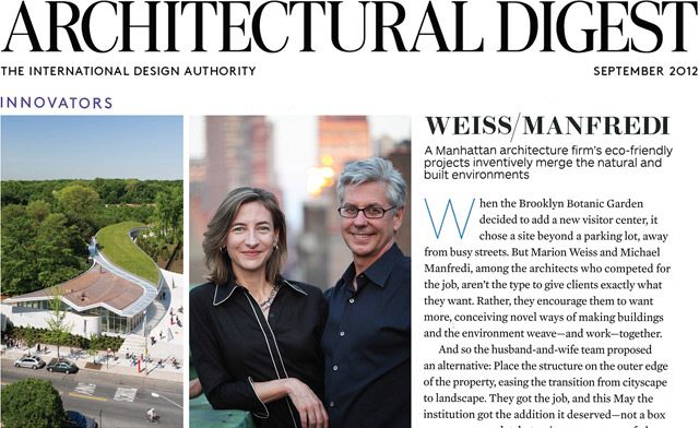 Weiss/Manfredi Featured in Architectural Digest as '2012 Innovator'