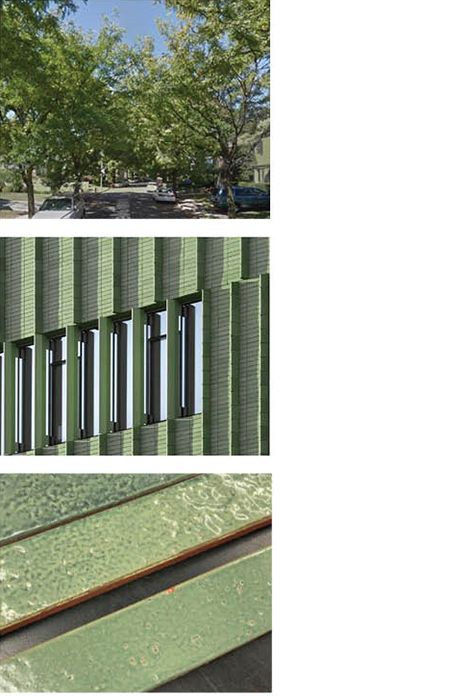 To welcome the Rego Park community, the new design proposes a three-story 18,500 square foot library building with a strong sculptural element. A facade of green-glazed brick celebrates the familiar material context of the neighborhood's masonry buildings and tree-lined streets while giving an old material a contemporary expression. Tall windows follow the ceiling height, opening the interior spaces to passers-by. Double-height reading room spaces bring views and light into every level of the building, including the cellar. The angled facades provide oblique views from the street, signaling transparency and accessibility as much as shelter and inviting readers and residents inside.