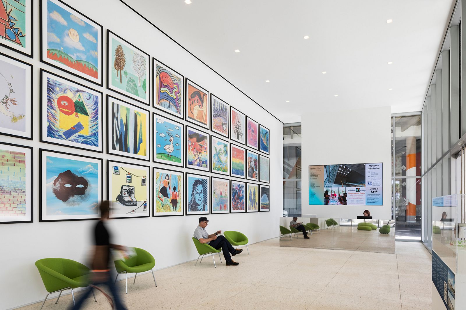 To date, the Vinik Family Education Center has served a very broad social and economic demographic: over 12,000 adults, children and teens attend art camps, studio classes, tours, and art therapy-informed programs. The new façade, along with the renovated atrium and galleries, expanded museum store, and a new west lobby, signals the museum’s initiative to increase both the visibility and accessibility of the museum to the public.