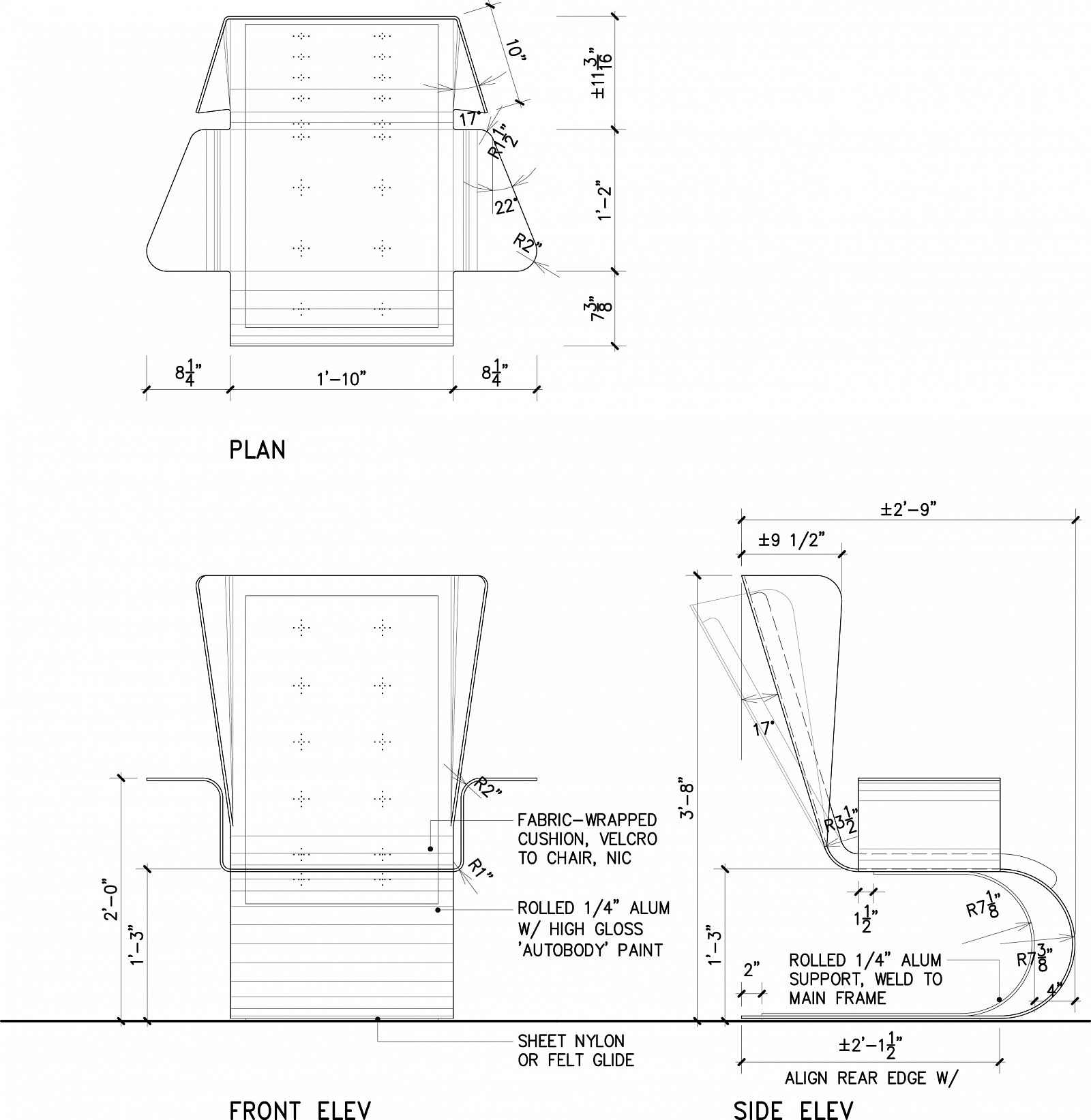 We like to work with models, both digital and analog, intuitively bending and folding paper. In the case of the Smith college lounge chair, the design came out of the process, by folding and unfolding paper. The result was almost like origami, a very simple cut-out that had a sense of movement in it and a simplicity of form. The design was the translation of the intuitive desire for thinness and movement and simplicity, combined with the strength through the prototype of the project. Hence, you see the double C-shape.