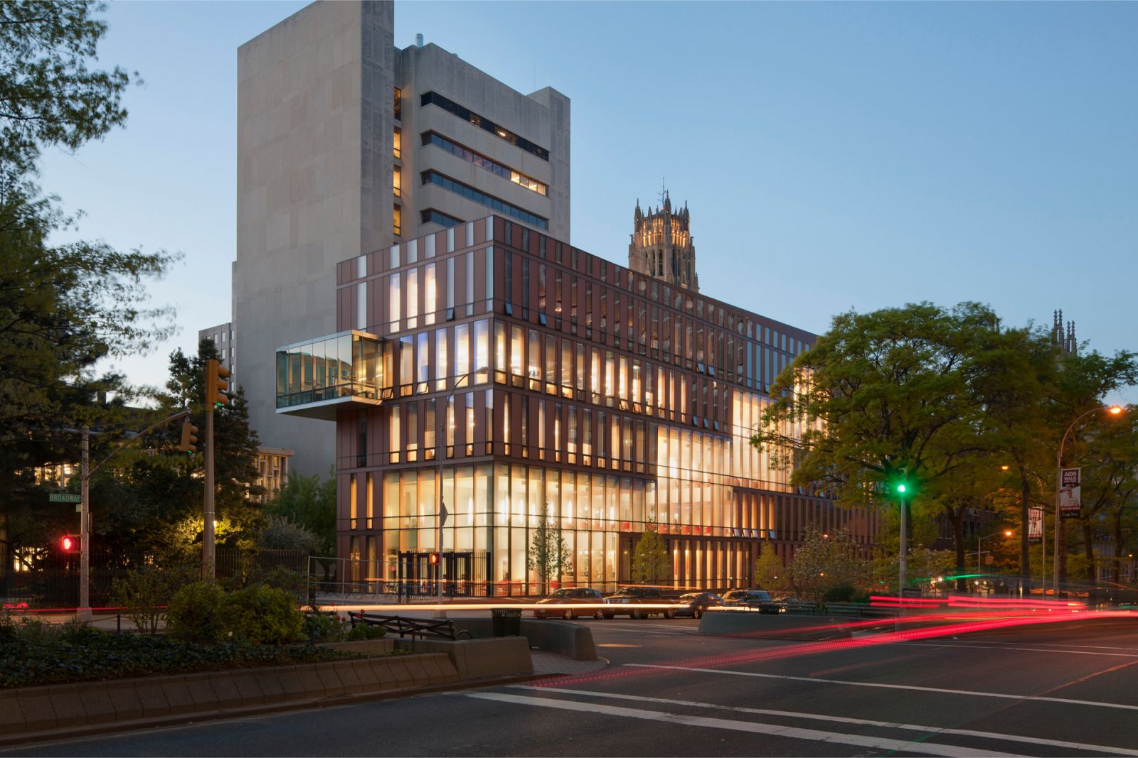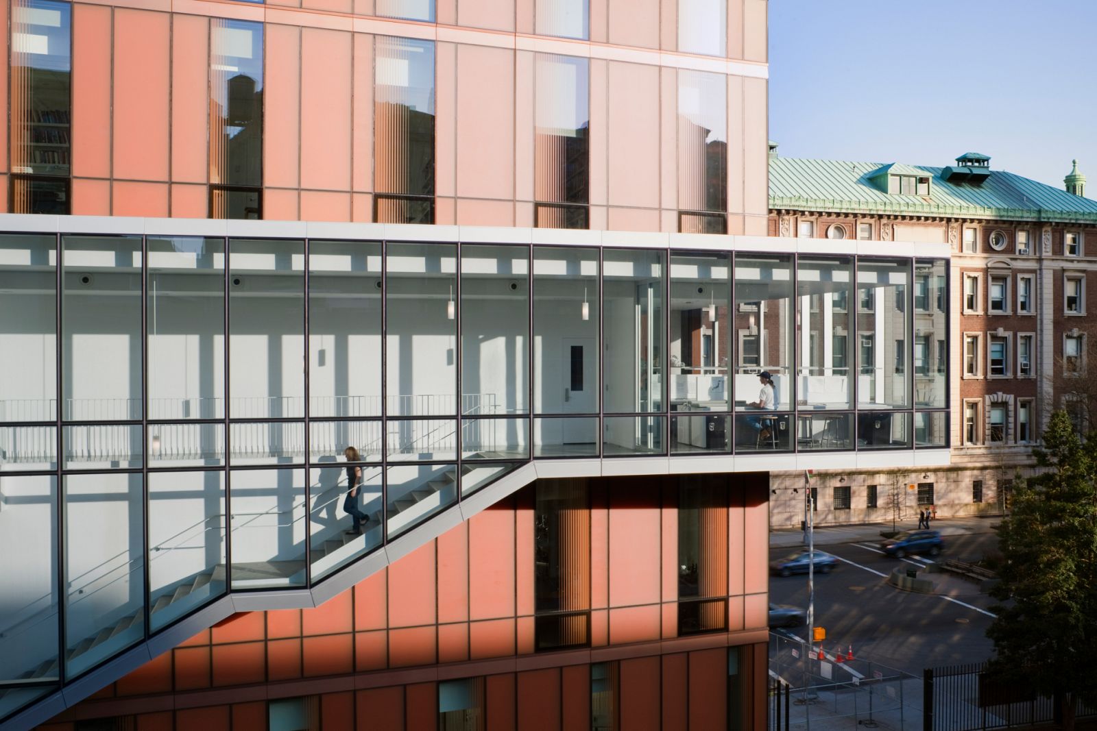 The wedge-shaped configuration provides a new presence on Broadway and its ascending terraces connect the previously separated landscapes at Barnard College.