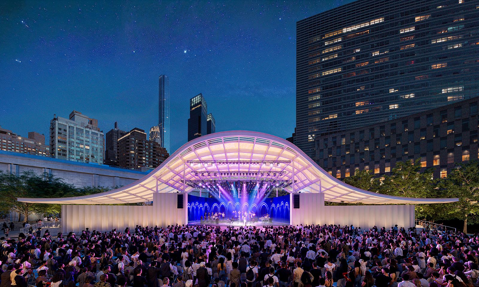 Inspired by the history of jazz that originated in the vibrant neighborhood of San Juan Hill, the design is conceived as a welcoming “Ribbon for Performance” – an invitation for all to enjoy the rich legacy of music and performance at Lincoln Center and create welcoming destination for everyday informal gatherings year-round. This new chapter in the story of Lincoln Center will transform Damrosch Park into a destination for performance and play, discovery, and delight, engaging the entire community and connecting the magic of performance to a broader and more diverse audience.