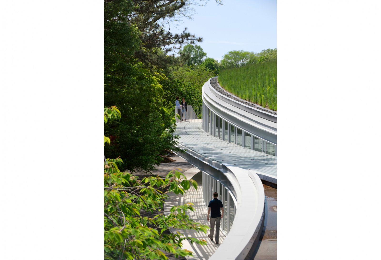 A sustainably rich structure, the LEED Gold-certified Visitor Center redefines the physical and philosophical relationship between visitor and garden, introducing new connections between landscape and structure, exhibition and movement. Like the garden, the Visitor Center evolves over time. The building’s lush, curving green roof adopts four distinct identities, changing with the seasons. With its sustainable features, such as rain gardens, geothermal system, and native plantings, the Visitor Center is a showcase for environmental education.
