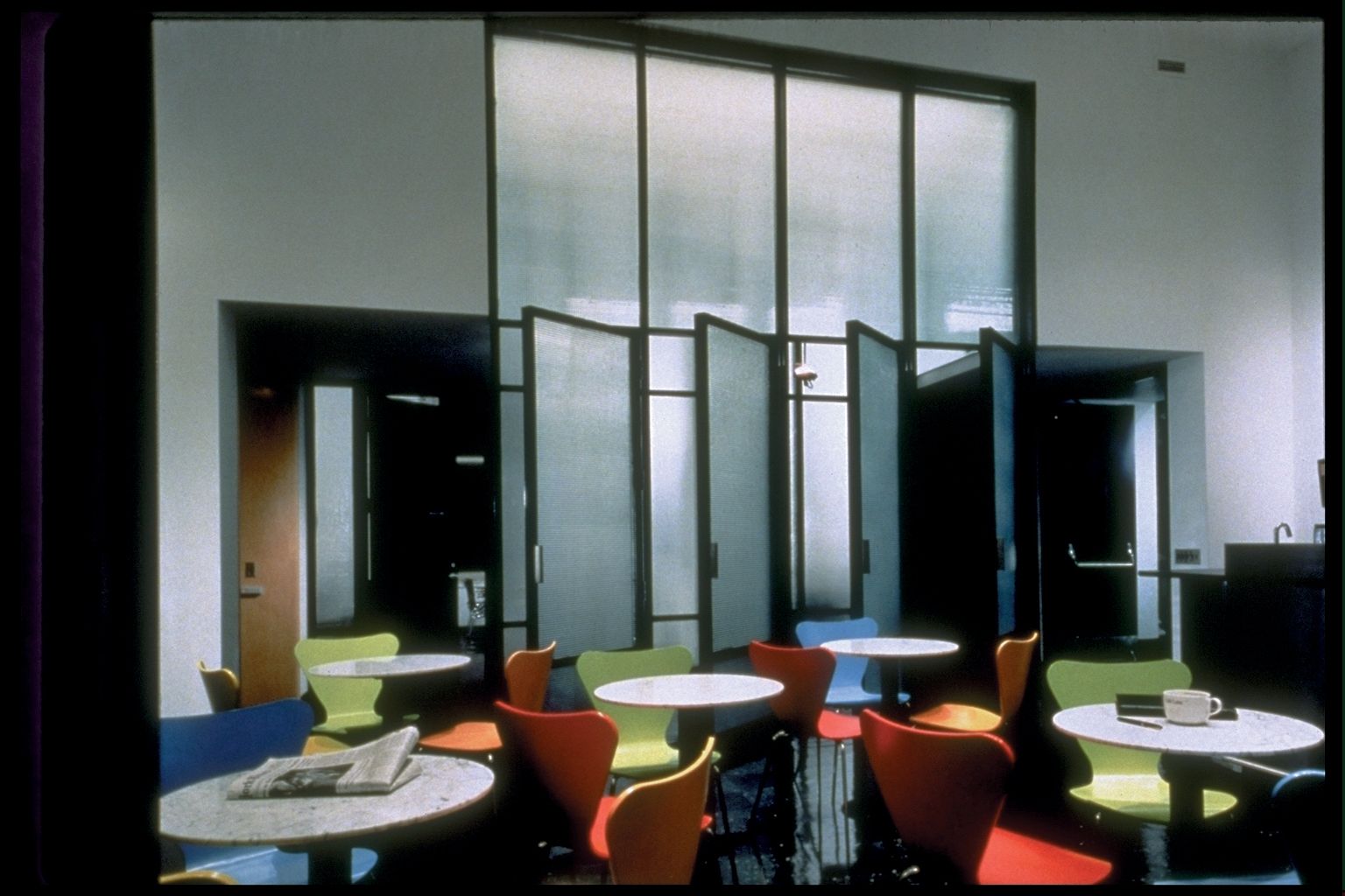 The renovation of Lewisohn Hall was initiated by a programmatic shift that separated the previously linked School of General Studies and the Division of Special Programs. This renovation included transforming public areas and introducing new classrooms, lounges, and meeting areas. Public areas and new rooms are illuminated by patterned glass panels, pivoting glass and steel walls, and sliding maple walls that shift to reconfigure public areas for different uses.