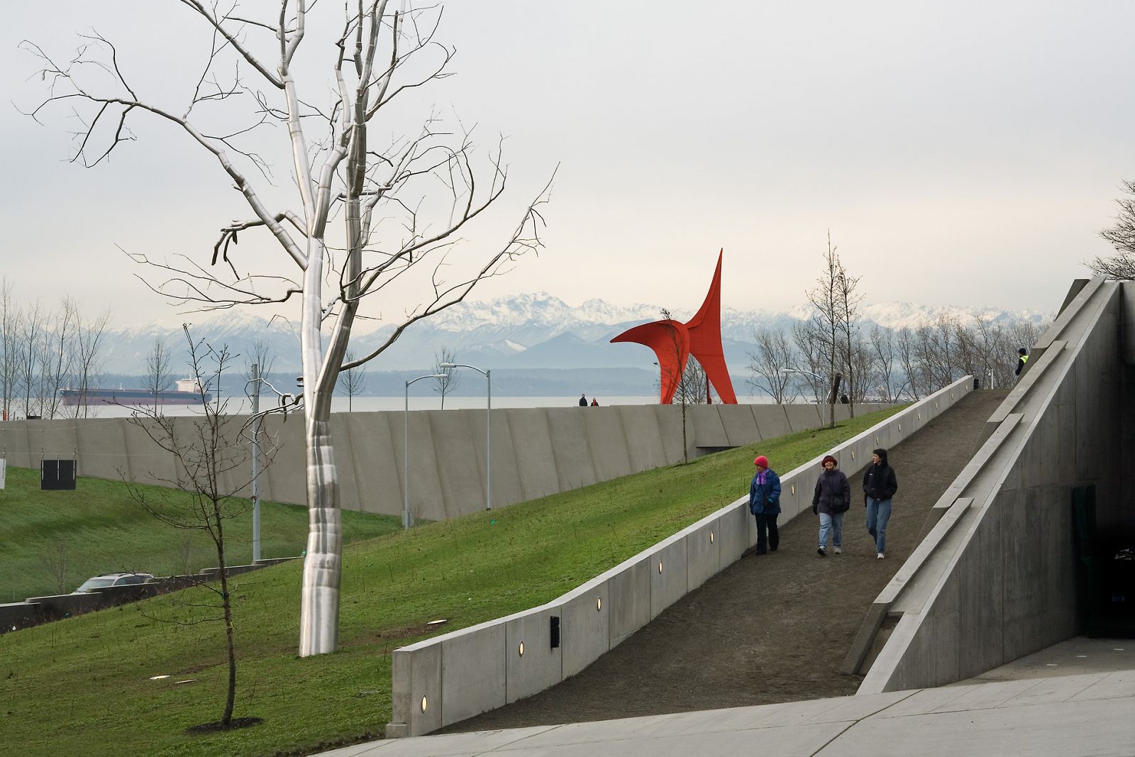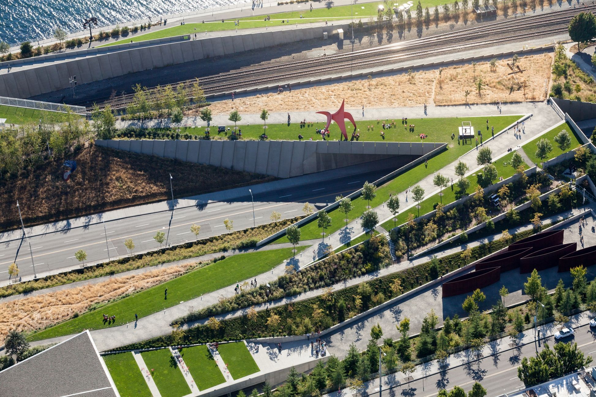 Winner of an international design competition, the design of the Olympic Sculpture Park not only moves sculpture to outside of the museum walls but brings the park itself into the landscape of the city.