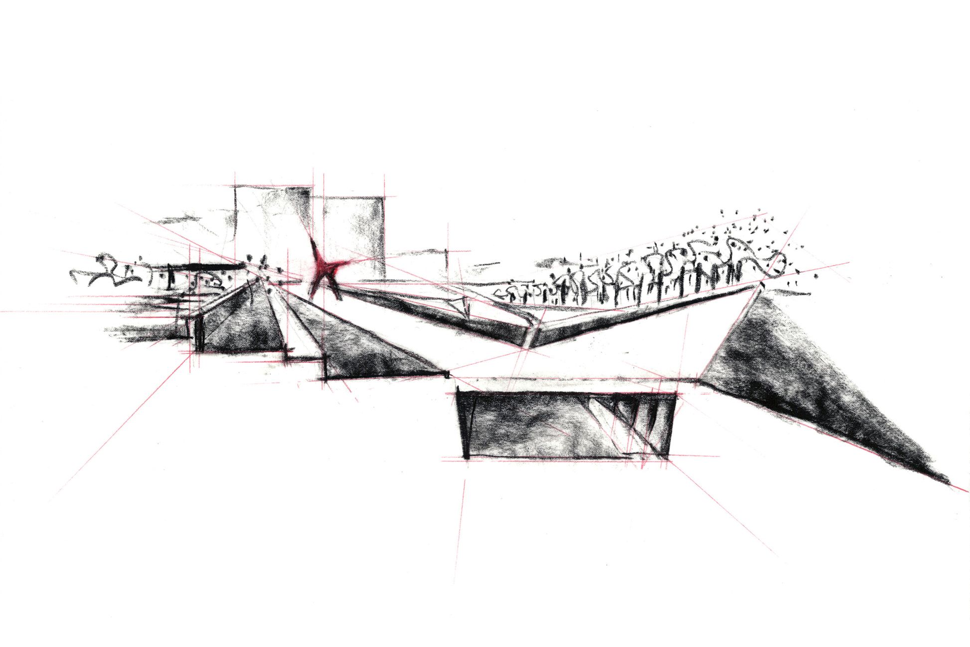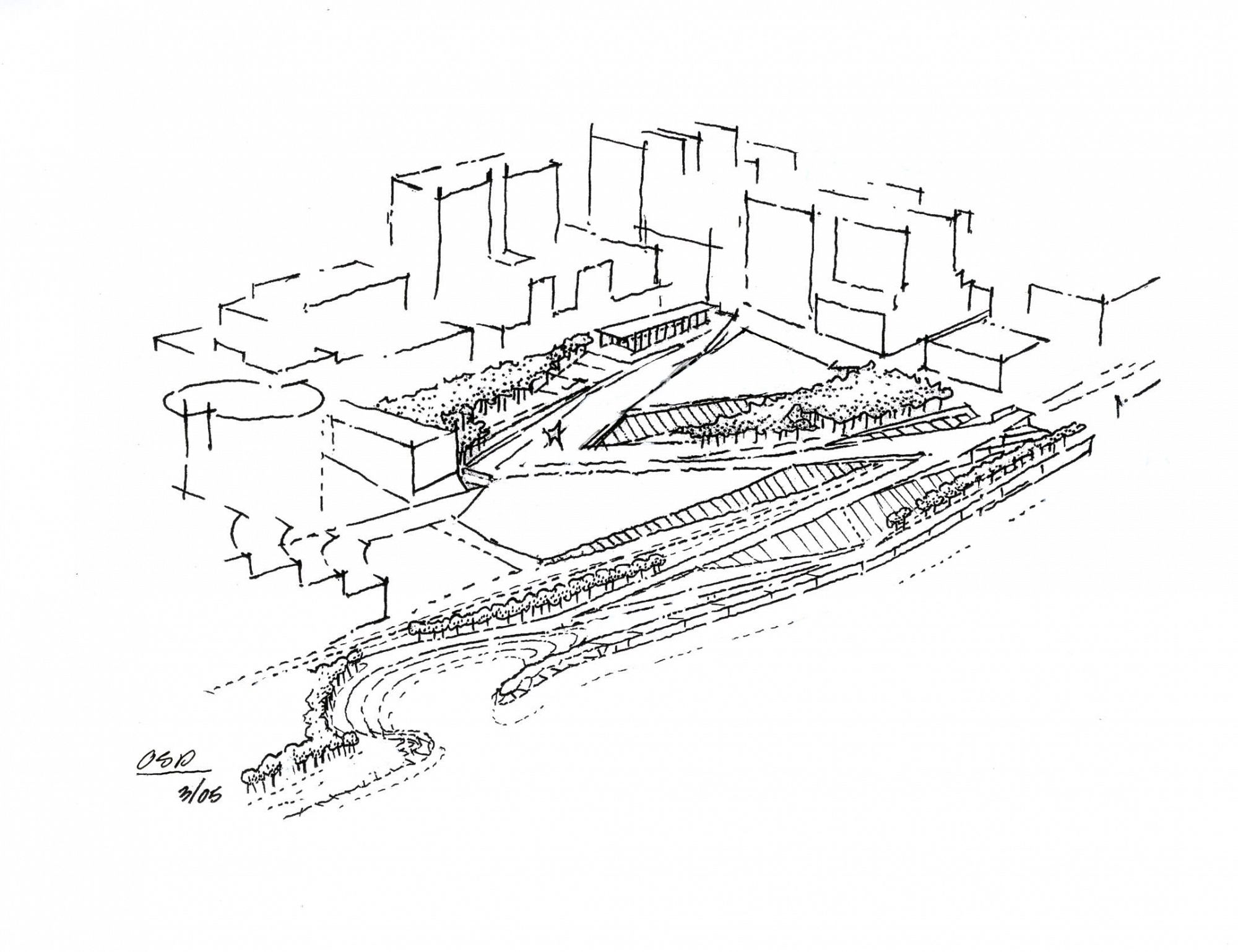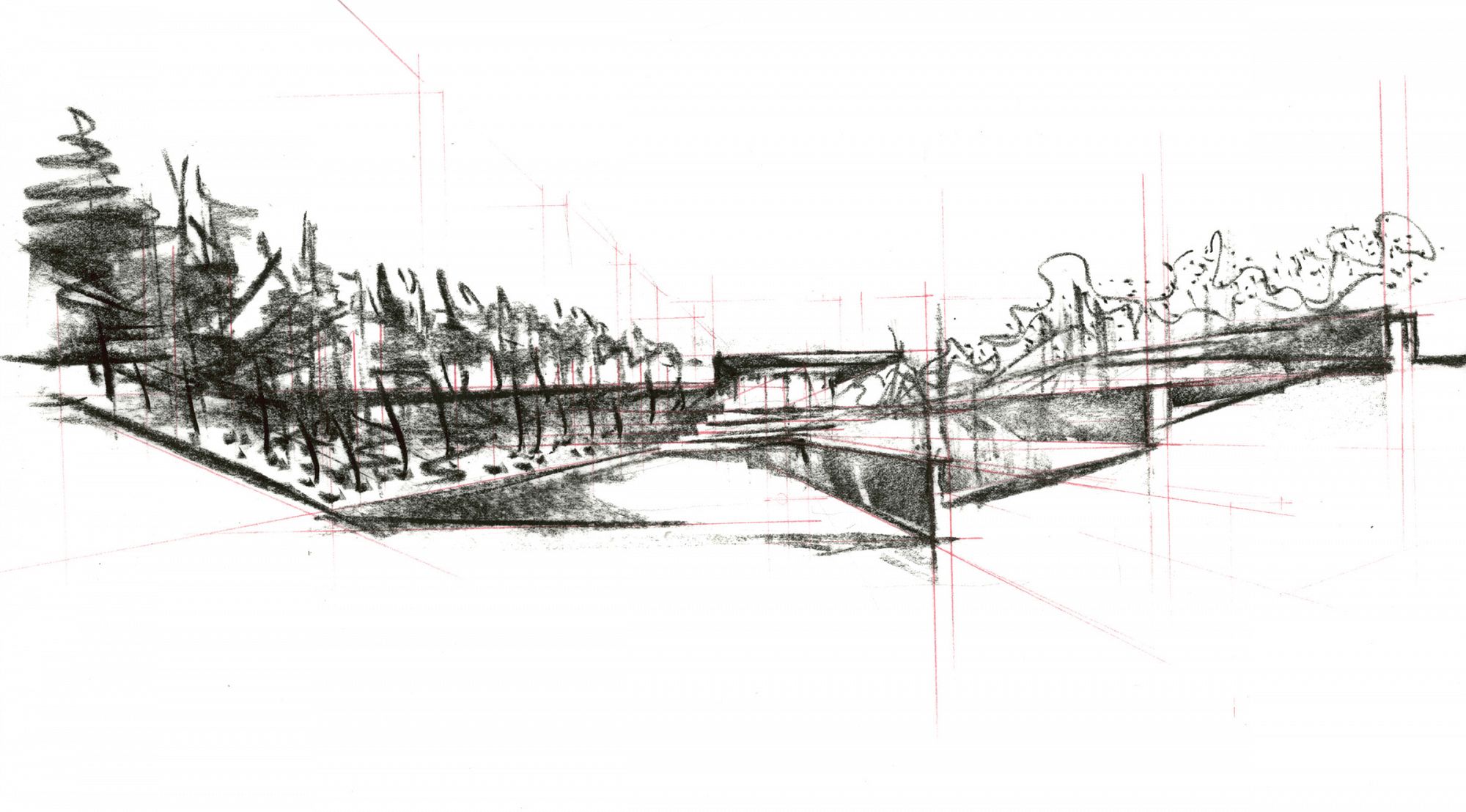 The design strategy, a Z-shaped landform, connects the three former industrial sites and unfolds from the city to the water's edge.