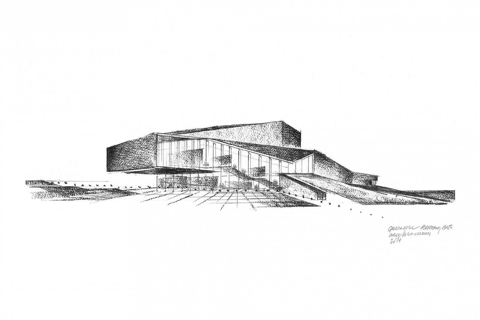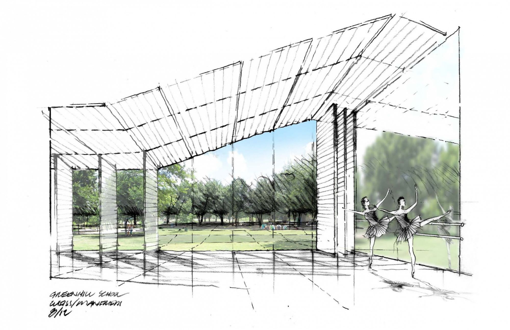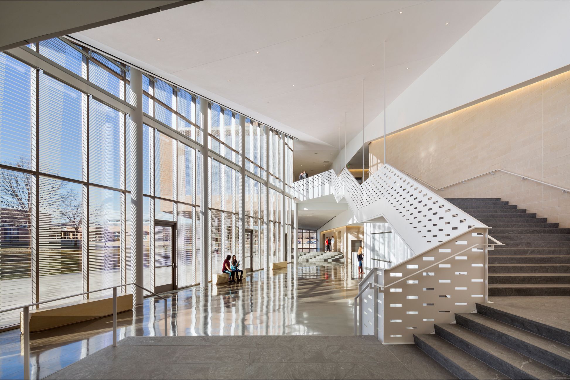 The Marshall Family Performing Arts Center is the focus of the performing arts at the Greenhill School. The design establishes a dialogue between building and campus: the building's configuration creates a sequence of spaces that shape an outdoor courtyard and frame views out to the existing campus. The courtyard is animated by the school’s double-height lobby. Designed to be an ascending gallery of collaborative spaces, the lobby connects all the performance venues and creates a destination for informal performances and spontaneous interactions.