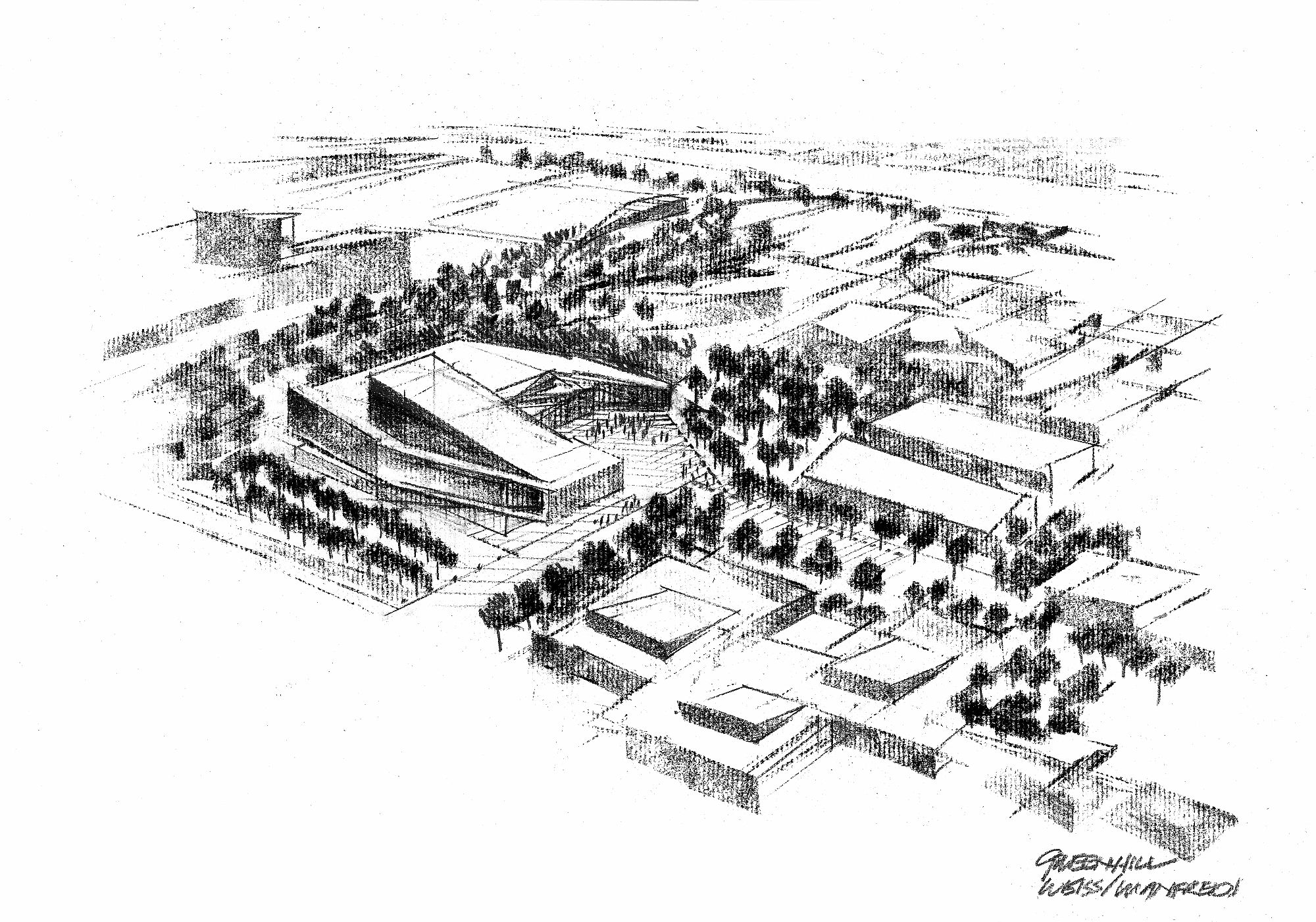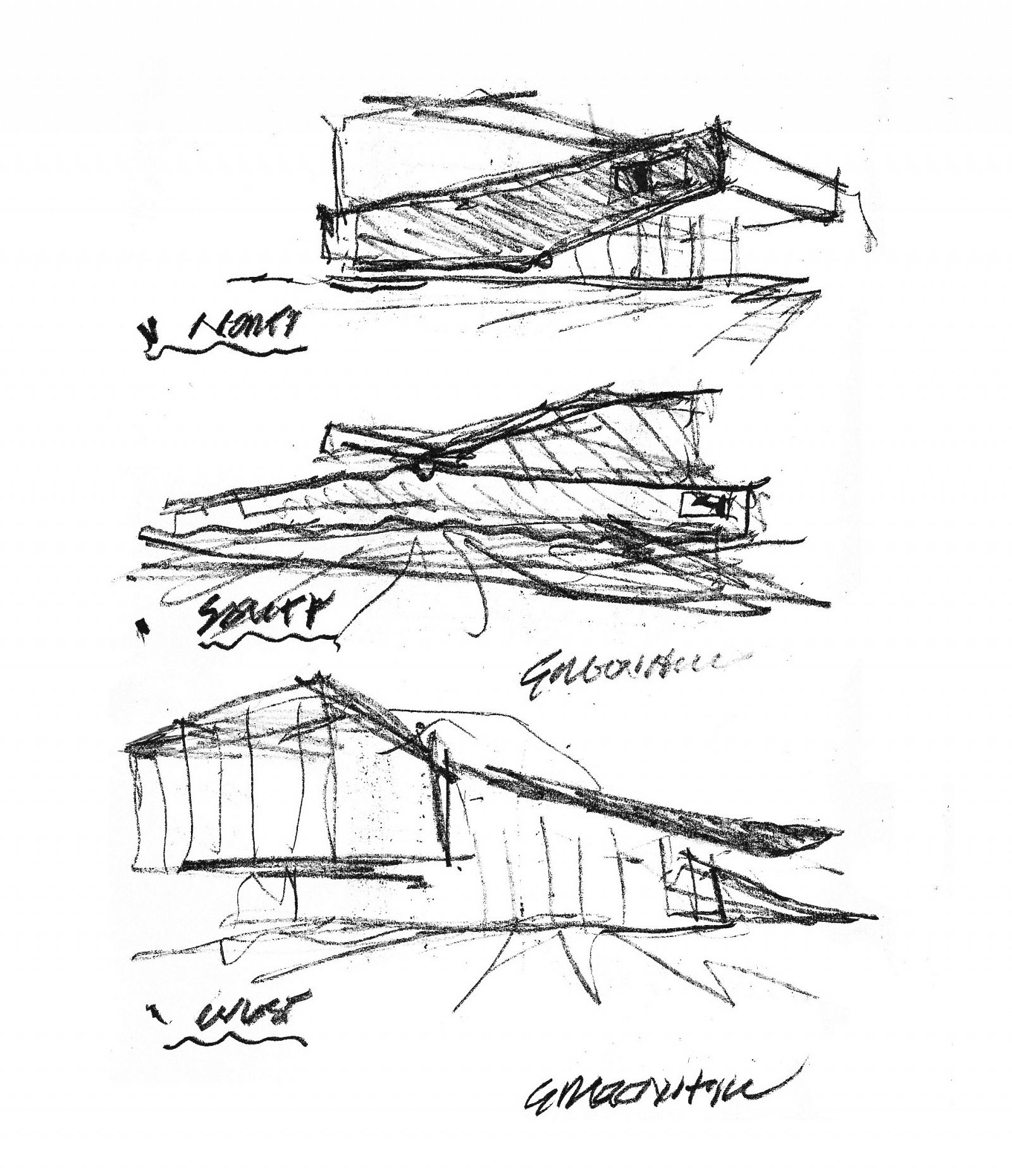 Rehearsal and dance spaces cantilever out the building forming an overhang that can provide shade and support for outdoor teaching, social gatherings, and entry experience.