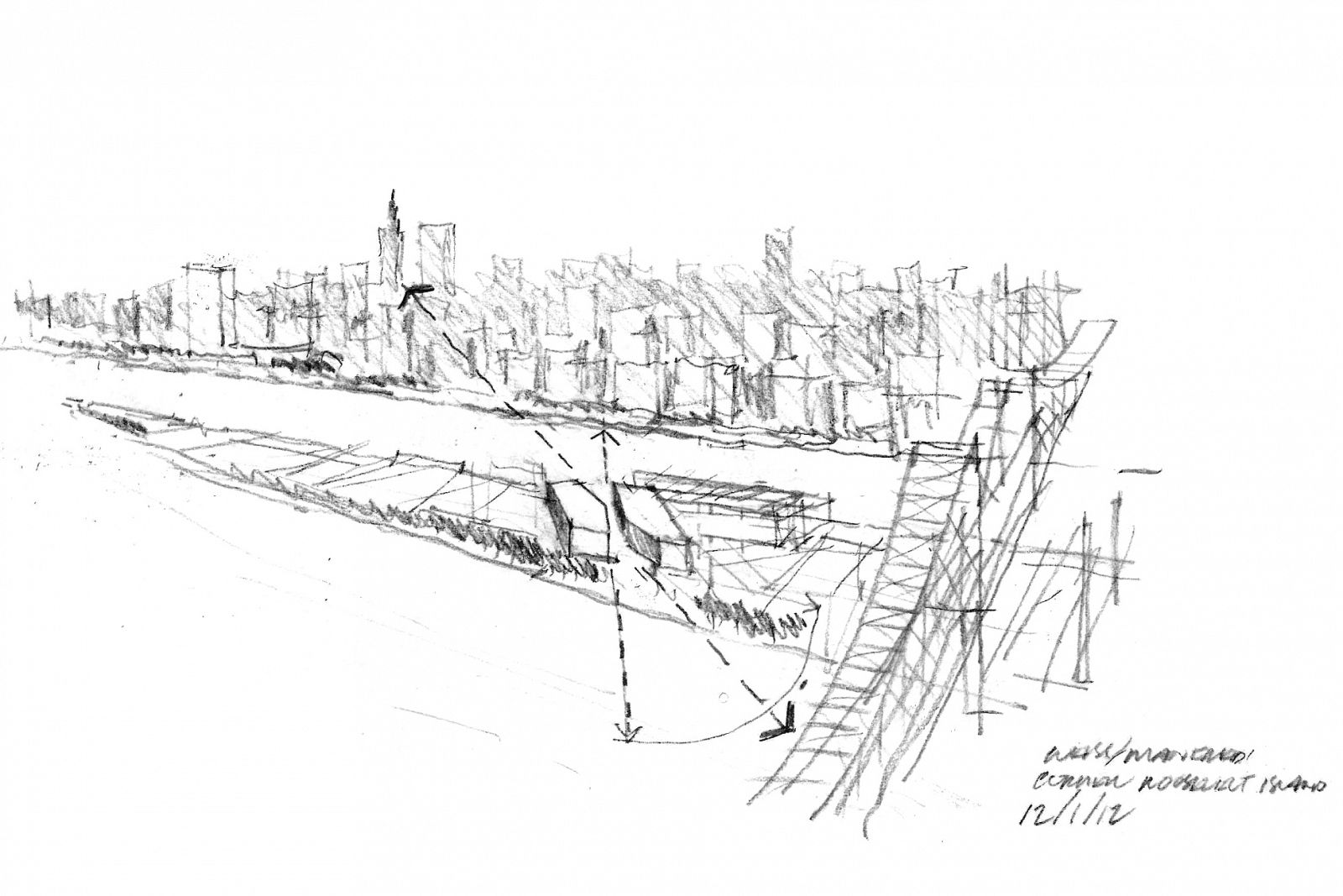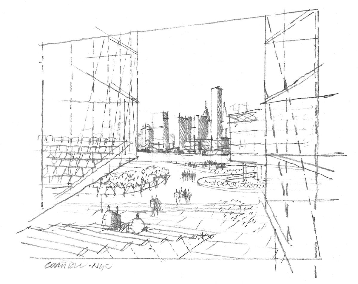 Envisioned as a crystalline incubator, the Tata Innovation Center establishes a catalytic setting for research and innovation. One-third of the 235,000-square-foot building hosts Cornell Tech studios, labs, classrooms, and event spaces, while the upper levels are dedicated to a mix of technology-focused companies and start-ups. All of the occupants share central, light-filled circulation spaces with panoramic skyline views and lounges that encourage social interaction and collaboration. The building's cantilevered southwest and northeast wings shelter outdoor social spaces that animate the ground floor retail spaces and entry terrace.
