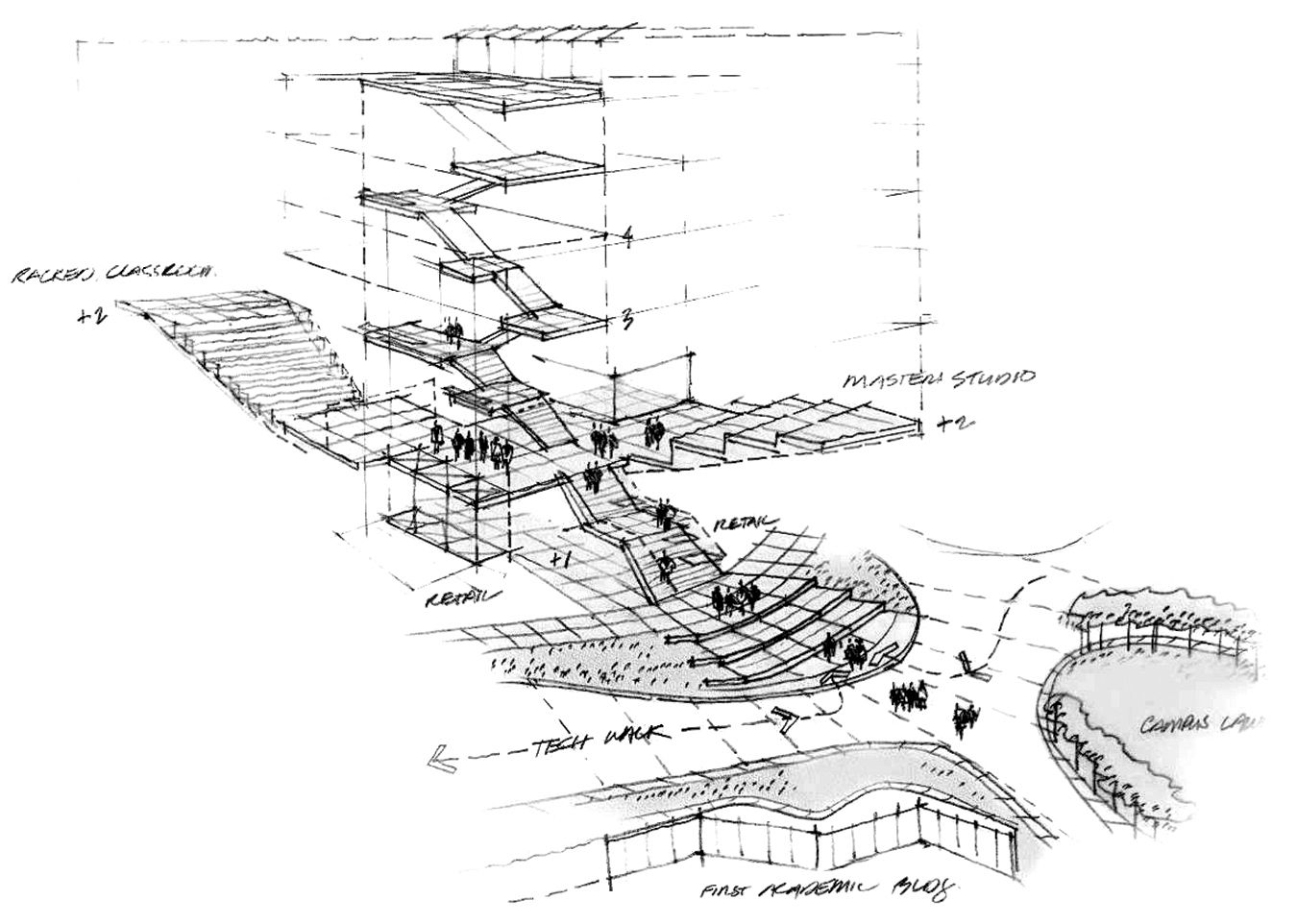 The Tata Innovation Center defines a new programmatic typology in which academic researchers and professional start-ups share the same space, forging vital connections between industry and academia.