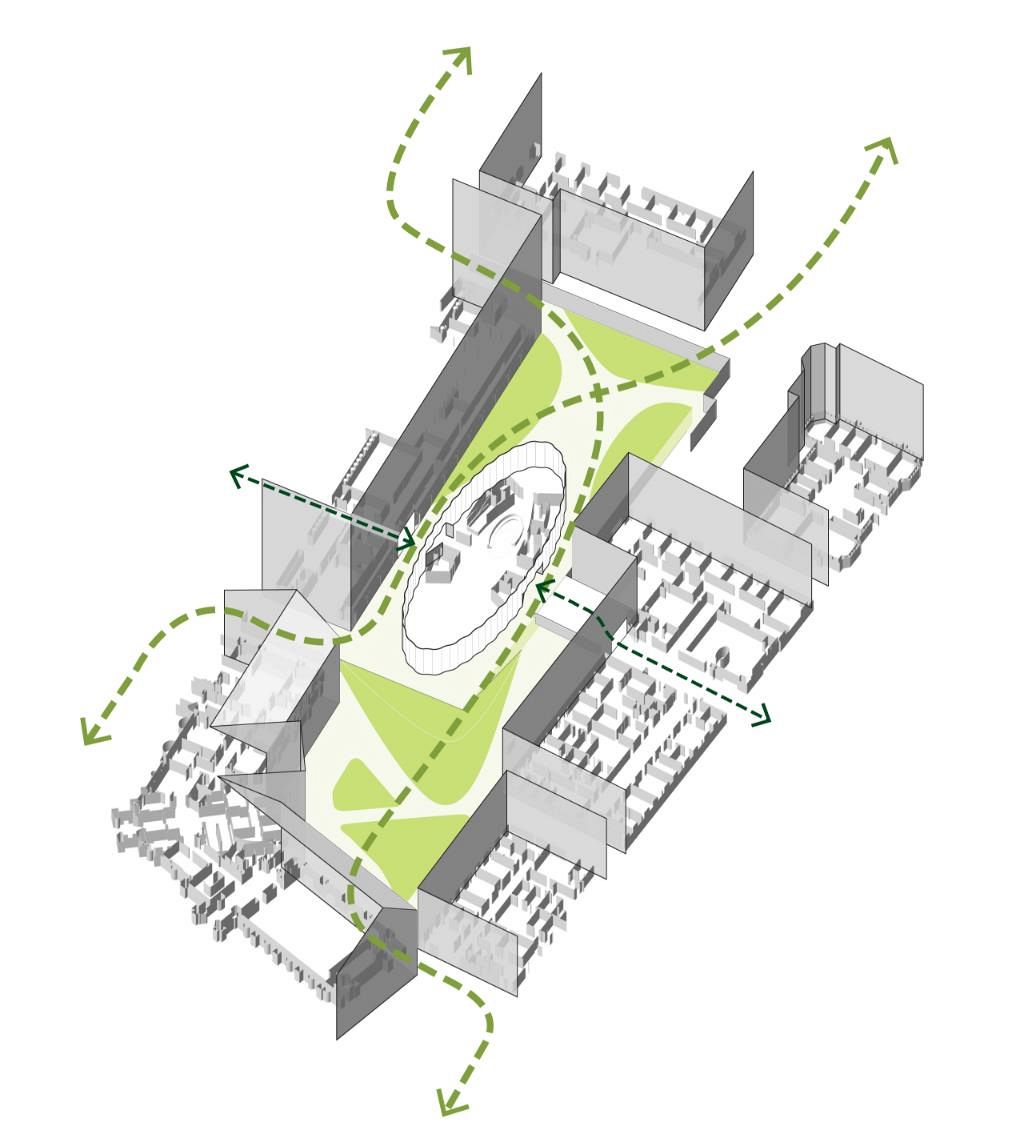 Set in a courtyard defined by Brutalist and Gothic architecture, the Center contrasts the static opacity of masonry with a luminous energy-efficient glass skin.