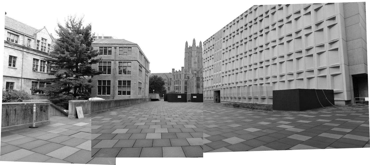 North-south section and view from Norris Courtyard situates the Tsai Center's relationship to historic surroundings.