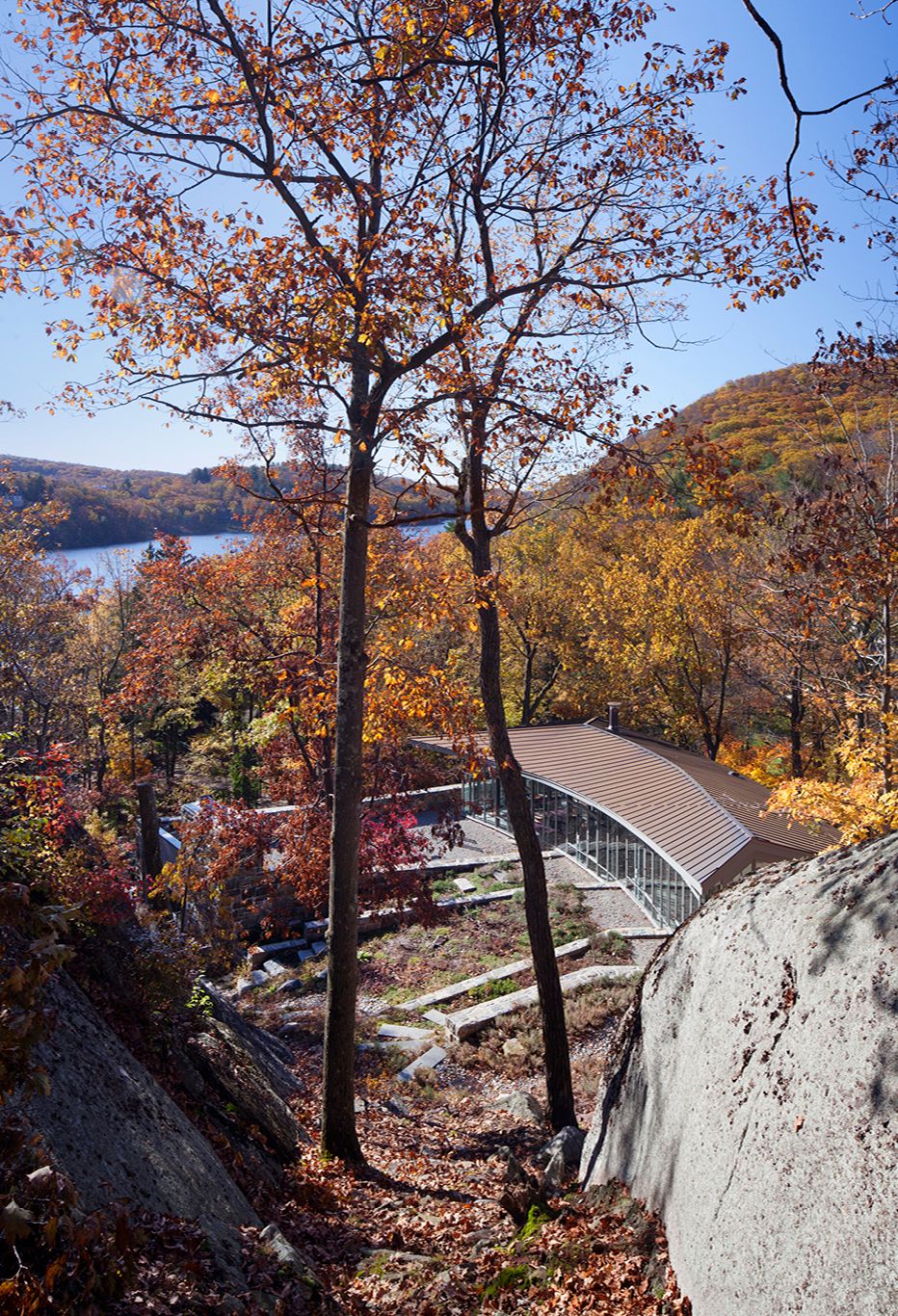 The McCann Residence is located on a former hunting-and-fishing preserve oriented around three glacial lakes and distinguished by a number of estates designed by prominent architects at the turn of the 19th century. Dense forests and rocky outcroppings characterize this landscape in the Ramapo Mountains.