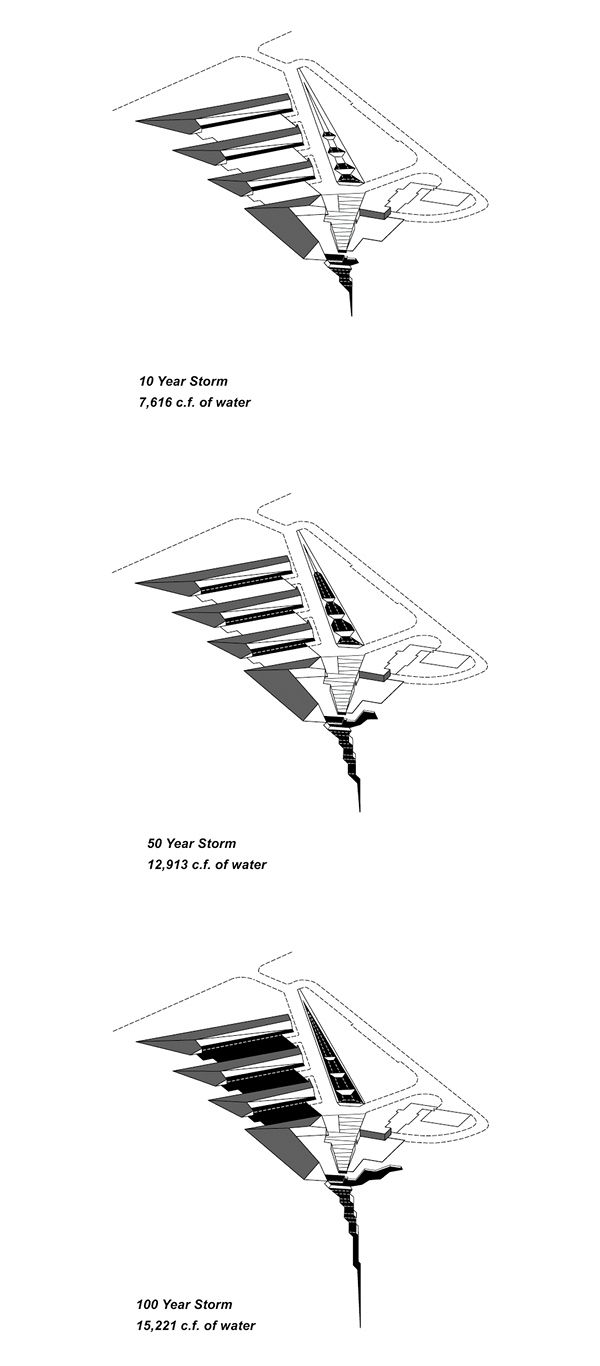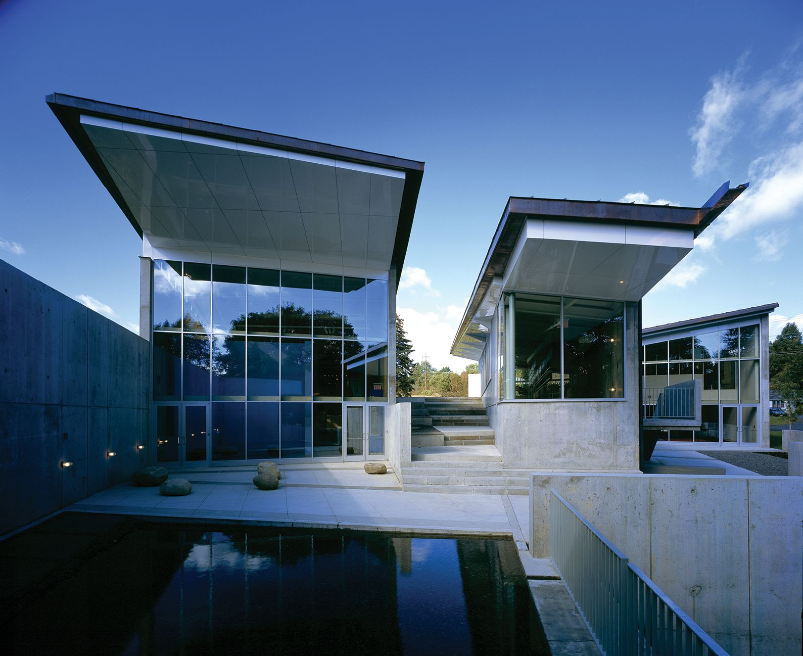 The two museum pavilions define a descending central courtyard, which recalls the spatial condition of many of Ithaca's dramatic gorges.