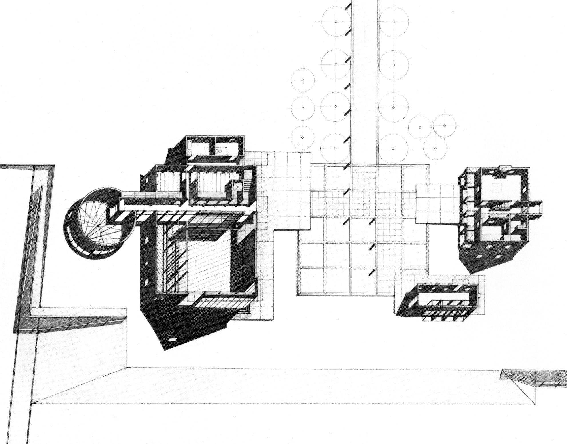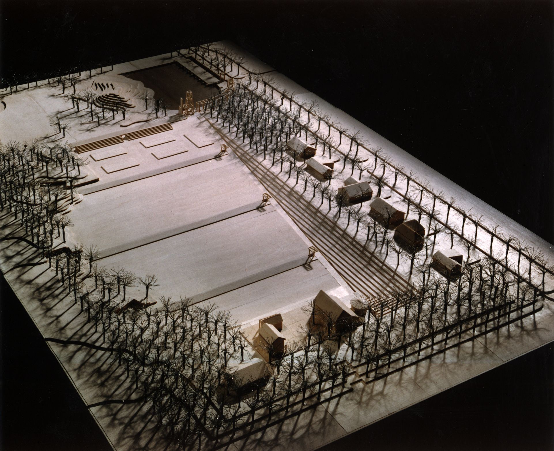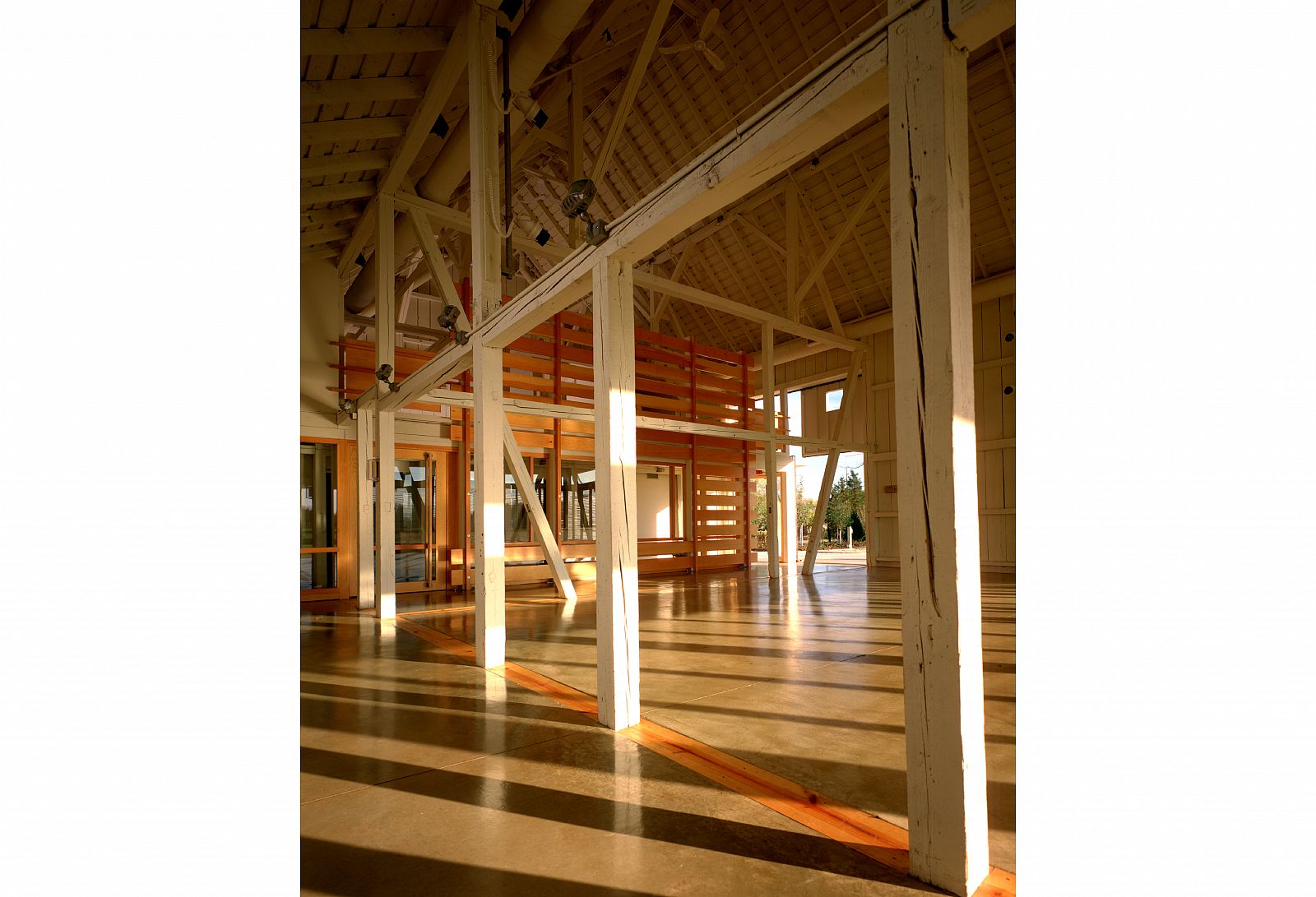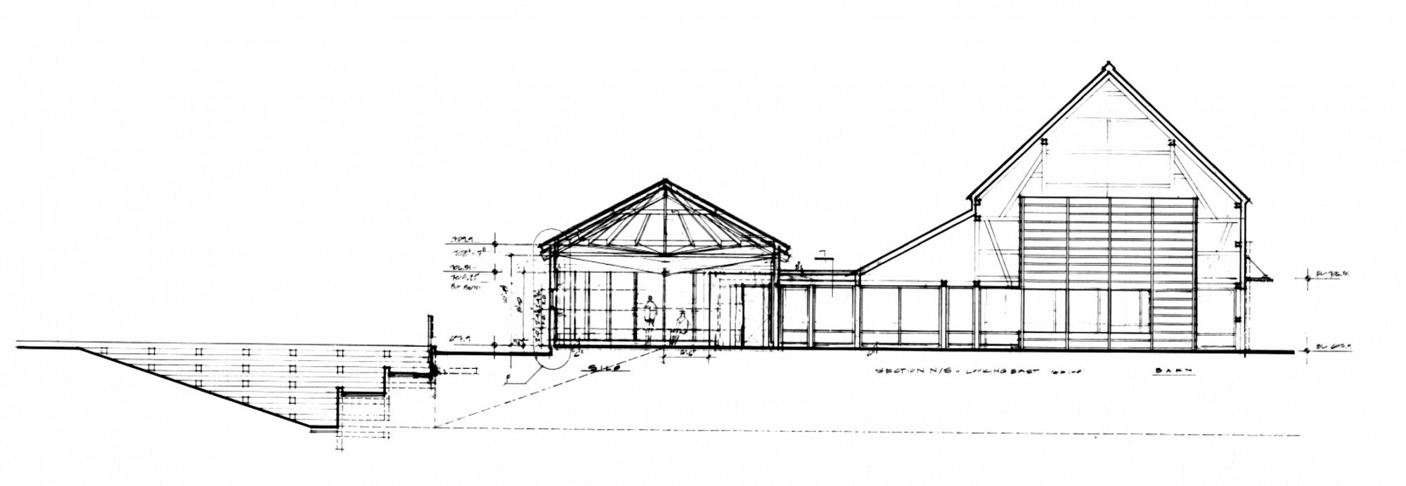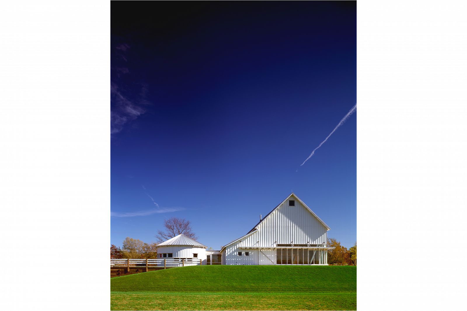The renovated barn, with selectively cut openings and additions, becomes a community center for Olympia Fields. The farmhouse serves as the new administrative center for the park district, and the milk barn has been converted into an art studio. Together these elements define a new setting which overlooks the cultivated landscape and invests the park with cultural and recreational activities.