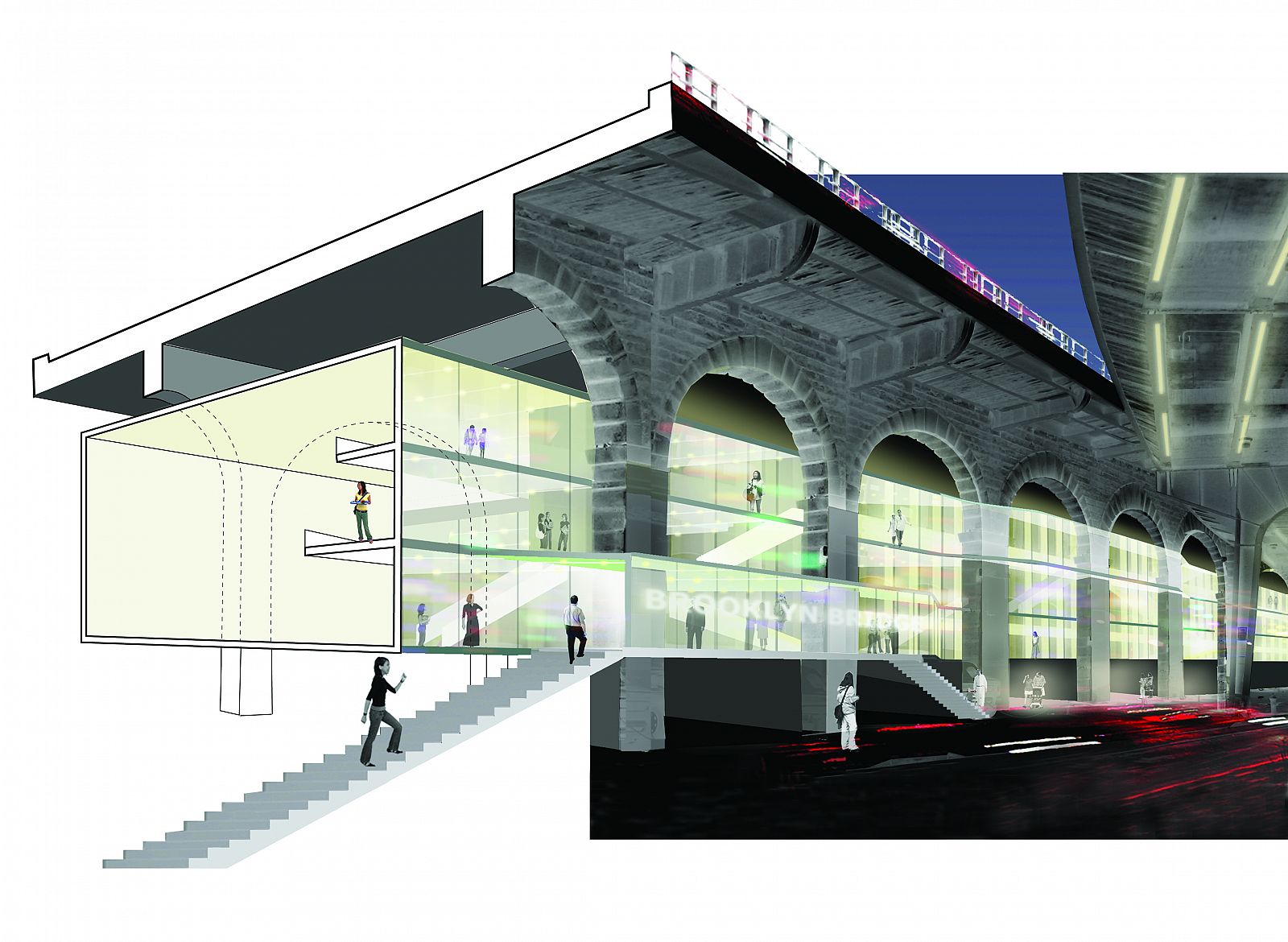 Lower Manhattan's eastern edge exists as a complex precinct, defined by the conflicting demands of connecting traffic flows between the Brooklyn Bridge and the FDR Drive, as well as defining the identities of the surrounding civic, cultural, commercial, and residential areas. This urban design plan proposes specific strategies that capitalize on the critical location, scale, and landmark beauty of the Brooklyn Bridge to connect rather than divide Lower Manhattan.