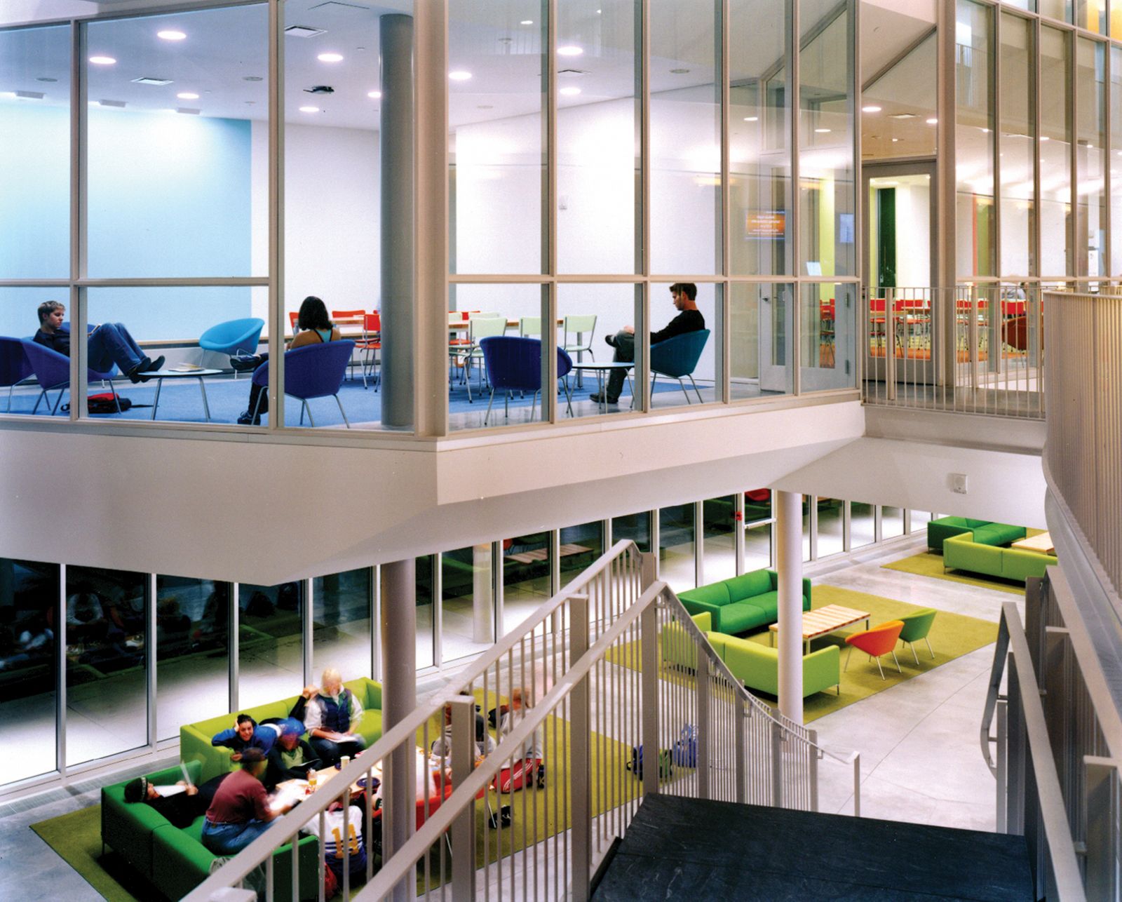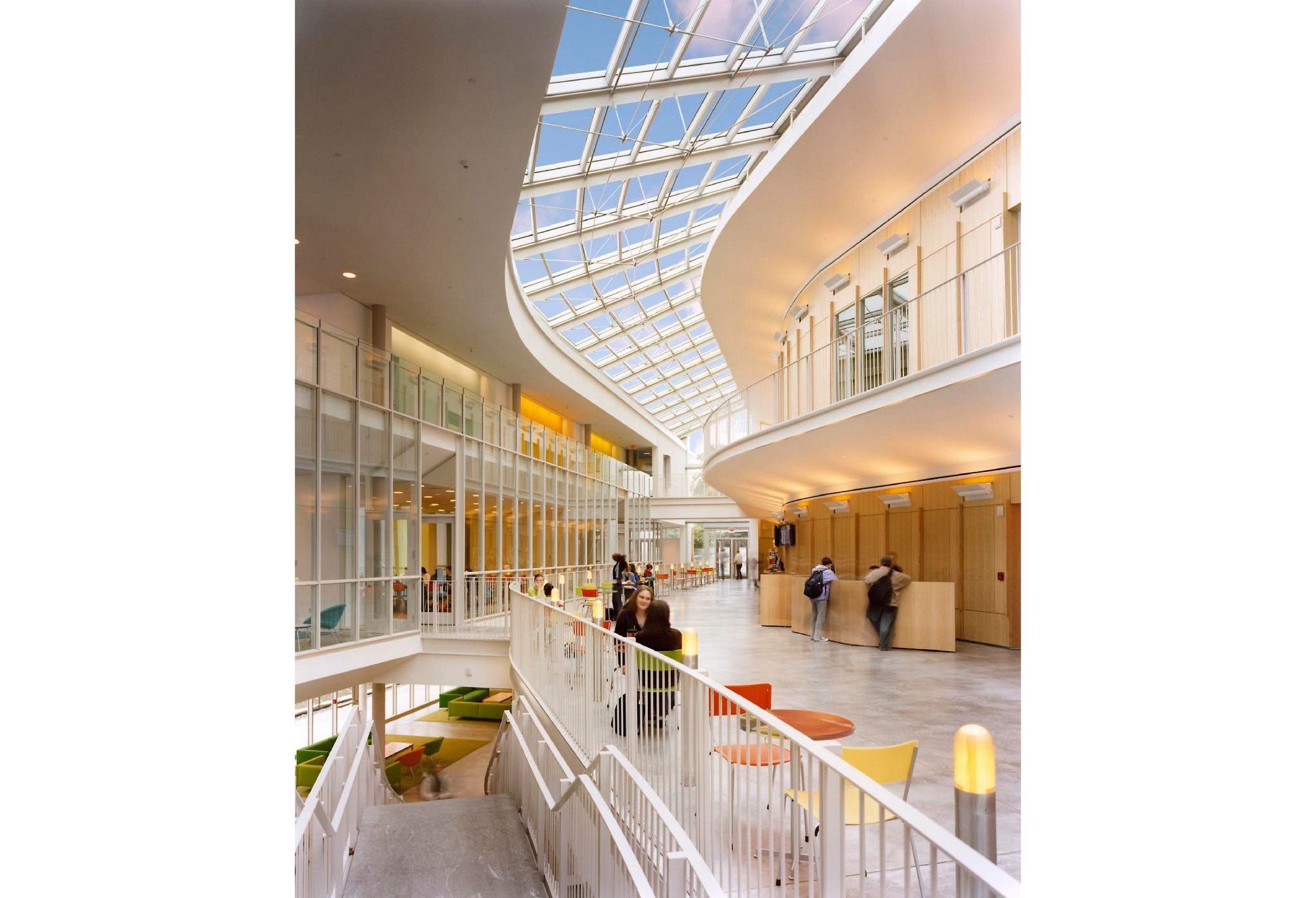 Imagined as an en-route passage through the campus, the building is defined by interconnecting paths that challenge the boundary between inside and outside.
