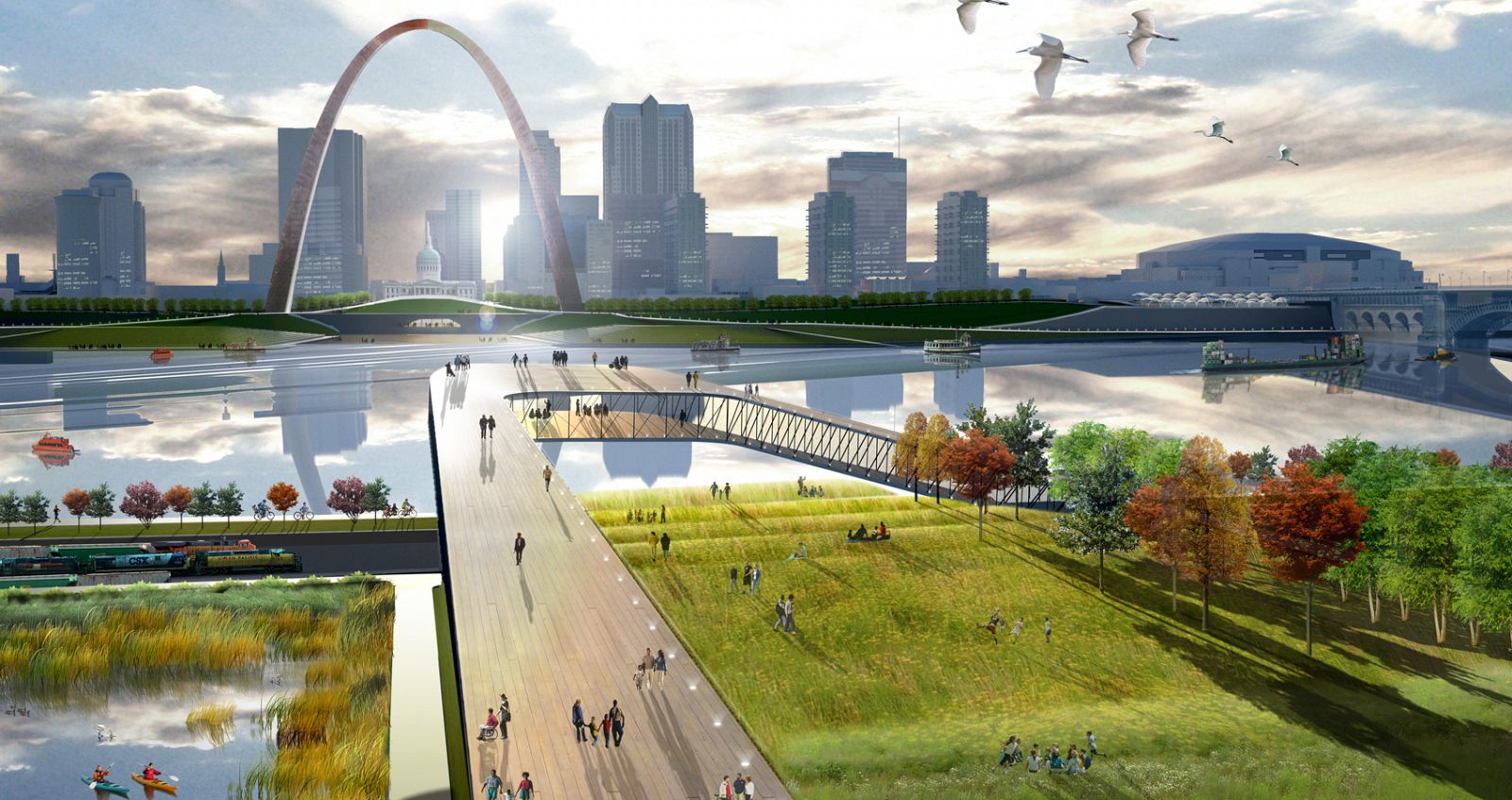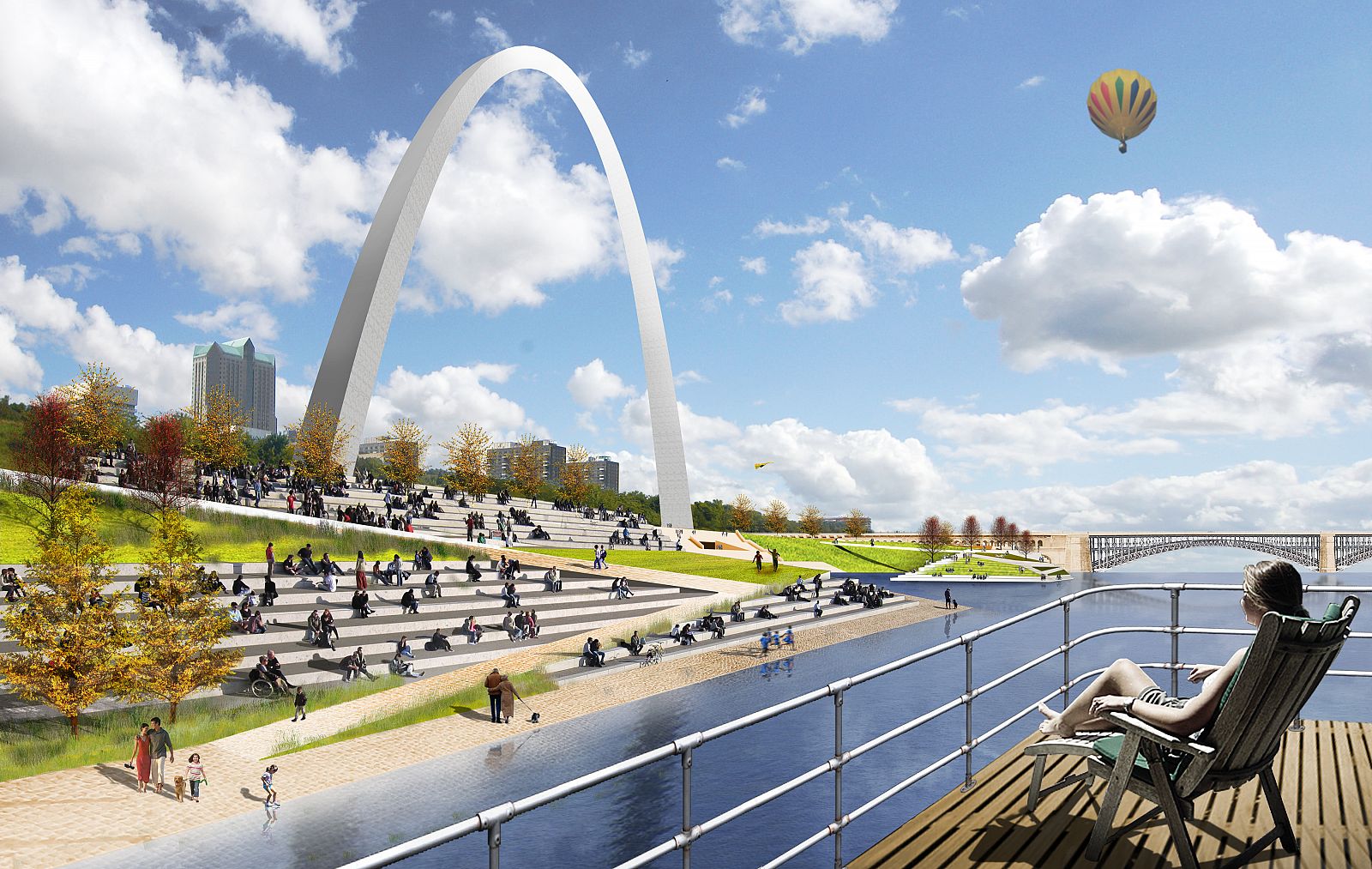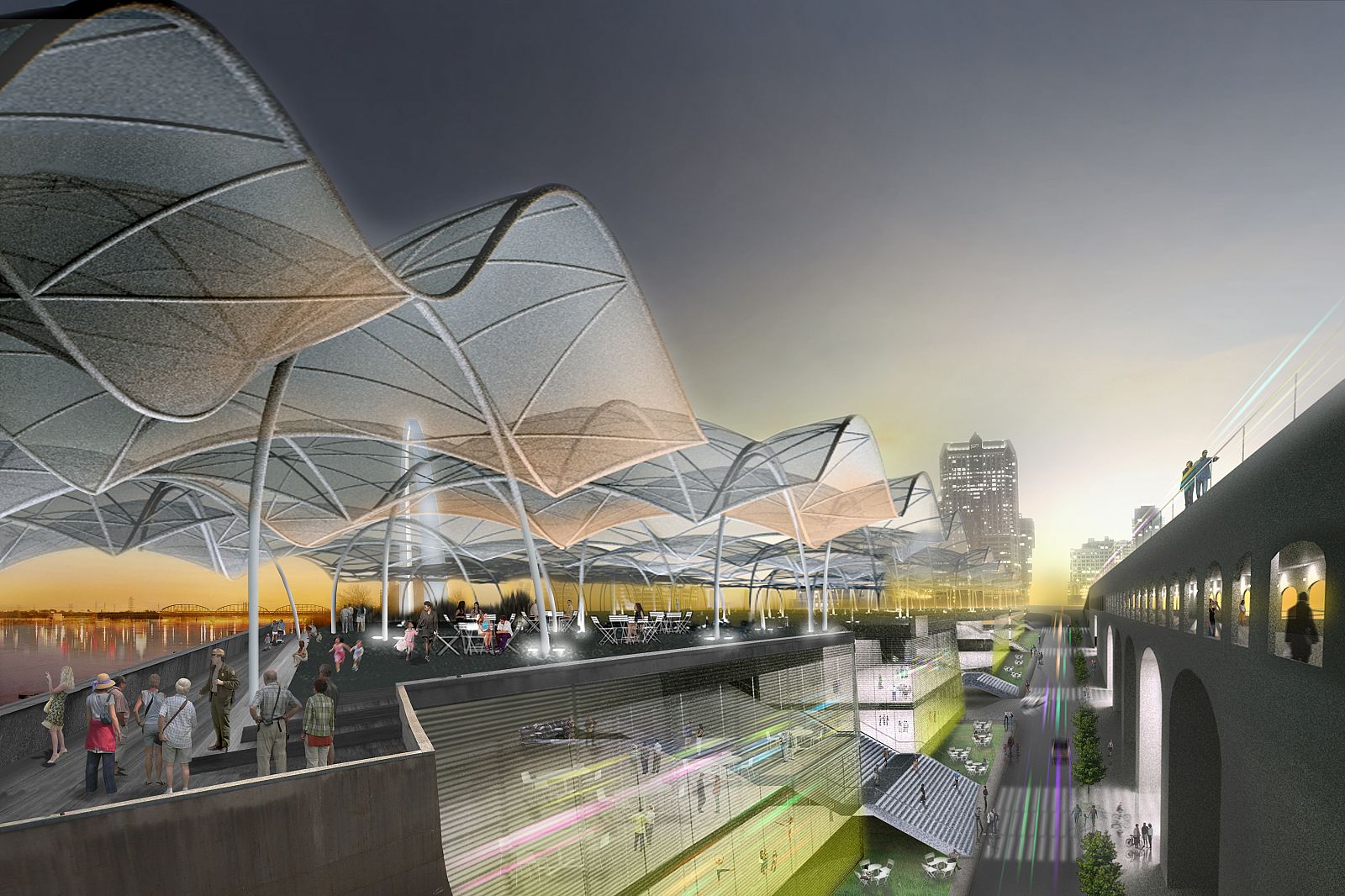 Full Circle reconnects the city to the park and the park to the river, embracing the Mississippi River as its center. Capitalizing on the dynamic movements and infrastructures of the site, the design creates a linked sequence of public settings that weave together to enhance the vibrancy and layered identities of the park. The monumental civic axis of St. Louis is extended over the highway to connect the city to the park. Strategic improvements to the memorial grounds preserves the Gateway Arch. The expanded museum acts as a catalyst to bridge history and community, culture and ecology, integrating the site into a larger cultural network of the St. Louis region.