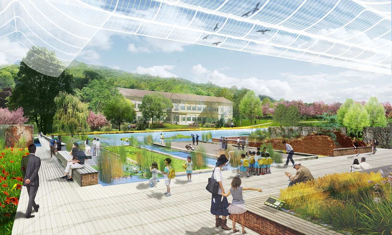 From the mountains to the river, the park to the city, and the city to the ecological centerpiece of Seoul's new National Park, our design for Yongsan Park weaves tapestries of prior histories and new futures into a place where the natural and human-made identities, cultivation, and civilization are free to wander and overlap—inviting both the citizens of Seoul and visitors around the world to create their own tapestry of new experiences.